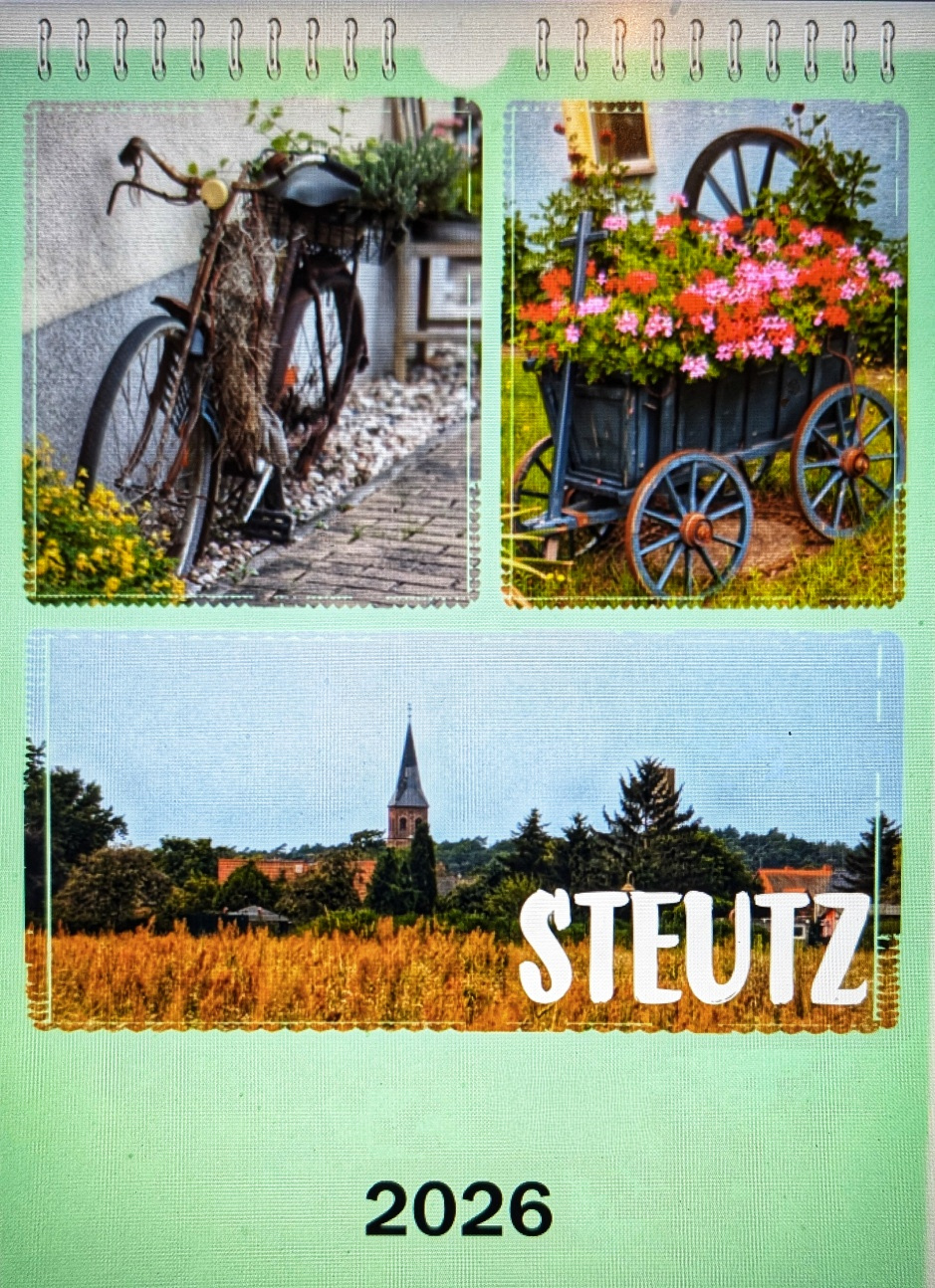 Ein ganzes Jahr Steutz: Der neue Kalender von unserem schönen Dorf Steutz ist fertig. Neben wunderschönen Motiven aus unserem Dorf fließt ein Teil der Einnahmen als Spende in die Arbeit unseres Vereins.