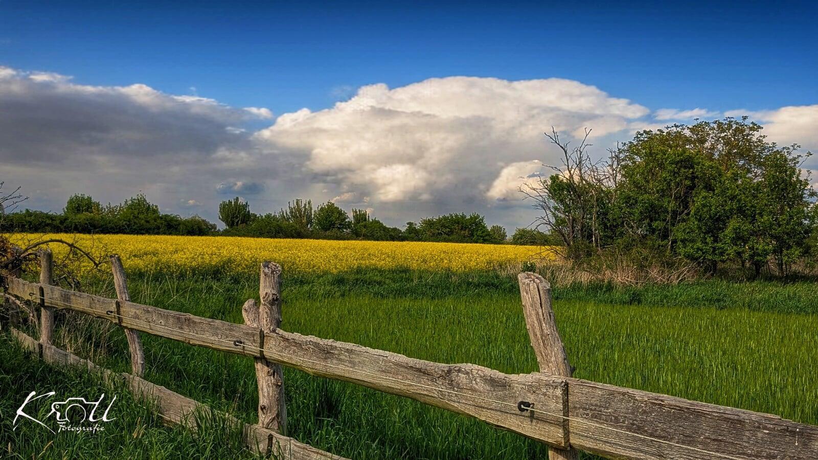 Im malerischen Steutz entfaltet die Natur ein lebendiges Farbenspiel. Saftige grüne Wiesen treffen auf goldene Felder unter einem weiten blauen Himmel.